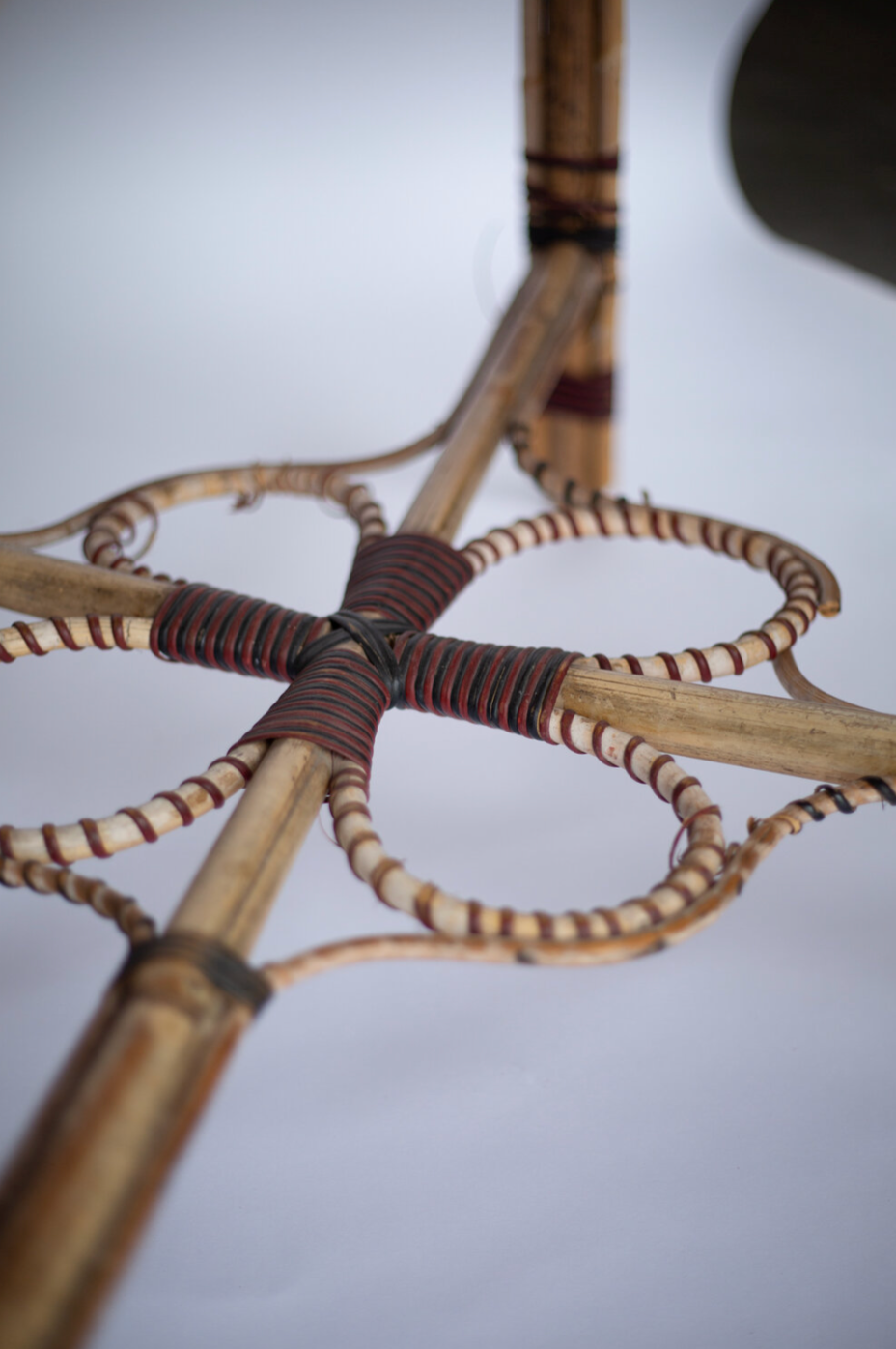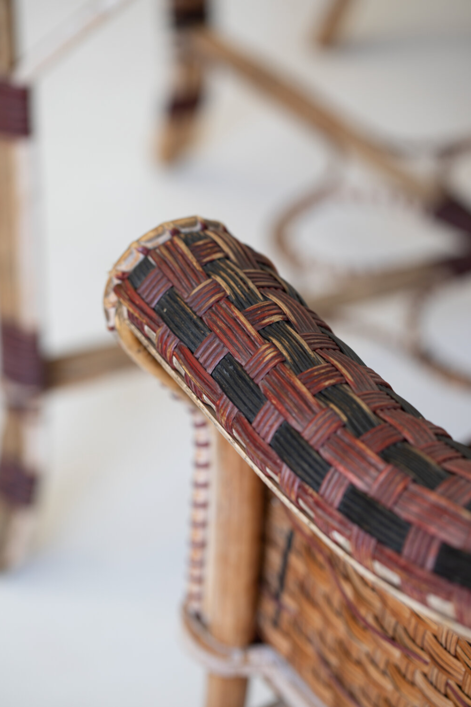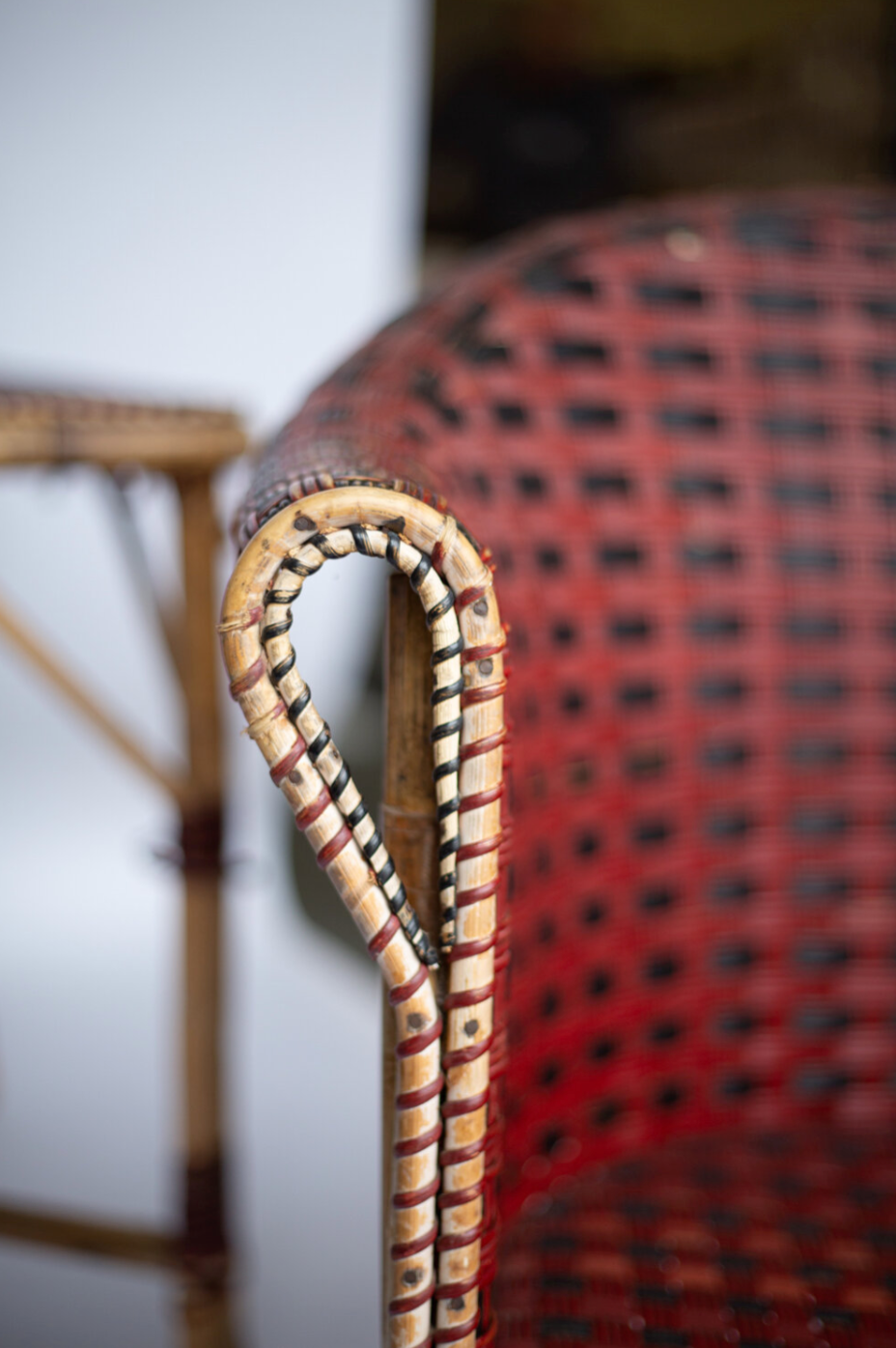 Elevate your living space with the Maison des Bambous Vintage Table and Chair Set, featuring a refined blend of black, red, and brown rattan. Its intricate weaving showcases expert craftsmanship, offering both timeless elegance and durable comfort. This set brings a sophisticated, natural charm to any room, perfect for those who appreciate classic design with a unique artisanal touch.